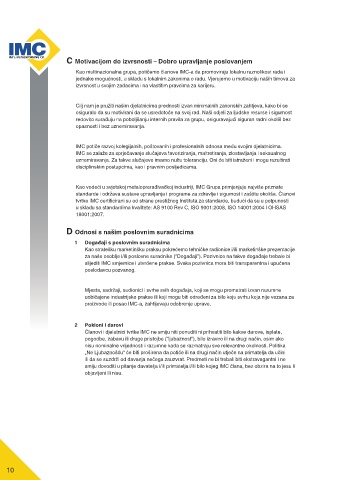 IMC potiče razvoj kolegijalnih, poštovanih i profesionalnih odnosa među svojim djelatnicima.