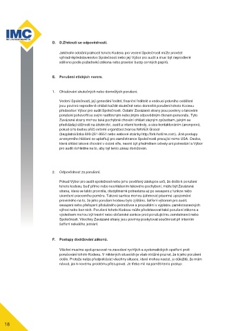 výhod nebo bez nich. Porušení tohoto Kodexu může představovat také porušení zákona a