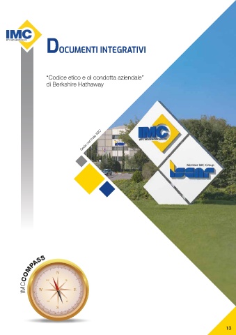 IMC INT’L METALWORKING CO. DOCUMENTI INTEGRATIVI “Codice etico e di condotta aziendale” di Berkshire Hathaway Sede centrale IMC IMCCOMPASS NW N 0 20 40 60 80 100 120 140 160 180 200 220 240 260 280 300 320 340 NE W SW SE E S 13