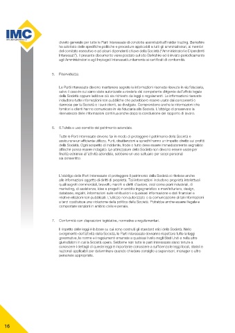 fornitori e clienti hanno comunicato in via fiduciaria alla Società. L’obbligo di preservare la