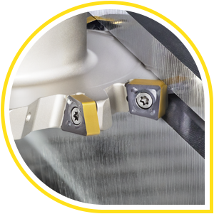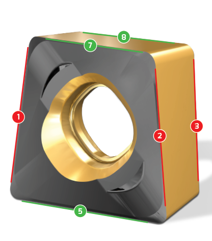 Unique Twisted High Positive Double-Sided Insert with 4 Right and 4 Left Hand Cutting Edges.