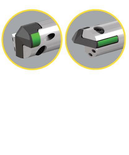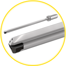 Auswechselbare Tieflochbohrer ohne Rüstzeit. Minimierte Nebenzeiten der Maschine für hohe Produktivität und exzellente Öberflächengüte.