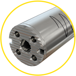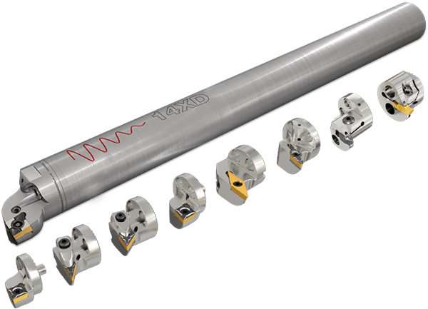 Langer Anti-Vibrations-Schaft 14xD mit modularen Kassetten ermöglicht tiefere Bearbeitungen.
