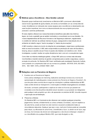 entre os seus funcionários. A IMC está comprometida na prevenção de casos de favoritismo,