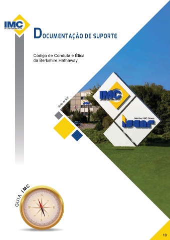 IMC INT’L METALWORKING CO. &OCUMENTAÇÃO DE SUPORTE Código de Conduta e Ética da Berkshire Hathaway Sede da IMC 0& , 0 20 40 $ N 60 80 *8, NW NE 100 340 W E 120 320 SW SE 260 280 300 S 240 220 140 160 180 200 13