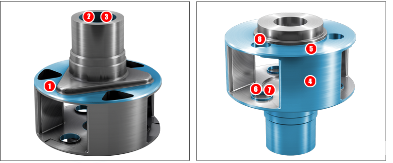 The rotary gear planetary carrier, made of nodular cast iron, is a part of the gear assembly. It functions to increase the slow rotation speed of the main shaft, transferred as higher rotation to the generator.