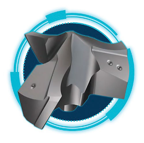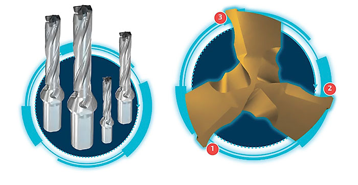 Весь процес обробки стає набагато простішим, адже сили різання розподіляються на три ріжучі крайки, а свердло при виході з деталі веде себе більш збалансовано. Як результат - стабільне свердління з мінімальним биттям. Таким чином, можна працювати в два рази швидше, значно збільшуючи подачу на зуб. Крім того, оператори верстатів можуть підтримувати таку саму подачу на оберт, що і у випадку зі свердлом з двома канавками, які виводять стружку.